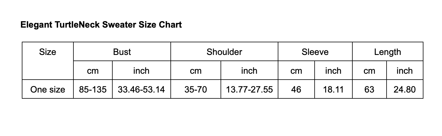 This elegant turtle neck sweater exudes sophistication and style. With attention to detail and a flattering design, it adds a touch of class to any outfit. Offering comfort and warmth, it's a versatile and essential piece for the fashion-forward woman.